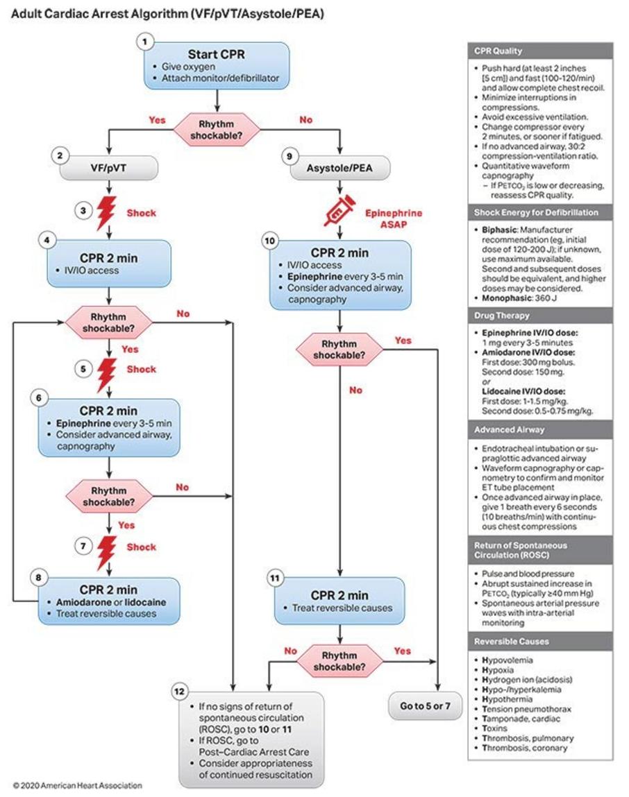 Have you ever heard that old saying, "Use it or lose it?" We absolutely know that is true. If you haven't practiced your skills in a while, you need a refresher, or perhaps this is your first time attending a course, we inserted the American Heart Association's 2020 ACLS Algorithms here for you to find easily. If you have any questions about the material, please call us at 877-760-5600 or text us at 909-543-8768.